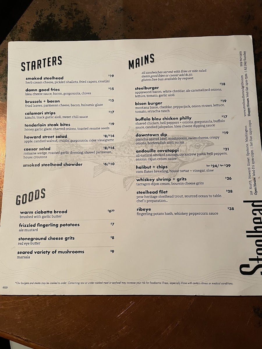 Steelhead Bar & Grille Menu (2025 Update)